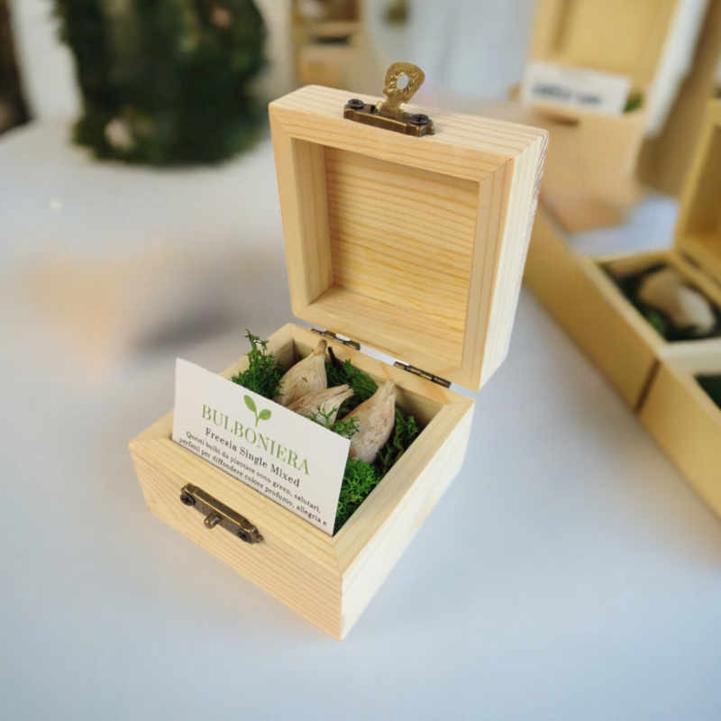 | Incluso | Bomboniera con bulbi, muschio e scatolina personalizzata |