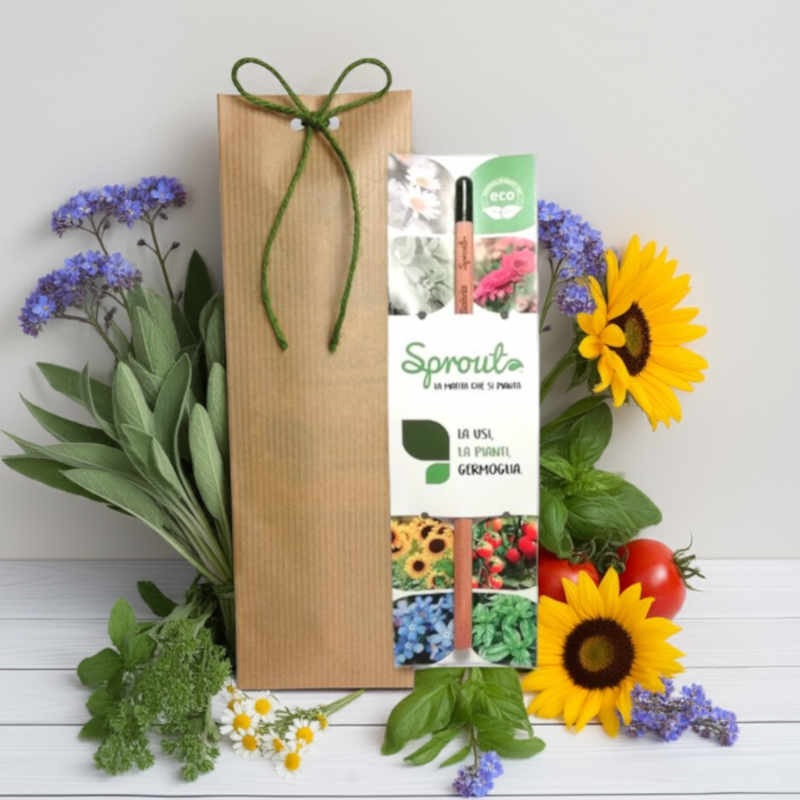 Scopri l'originale matita piantabile (nontiscordardime, girasole, margherita, basilico, salvia o pomodoro ciliegino), un simbolo di creatività e sostenibilità. Ogni tratto con questa matita non solo lascia un'impronta unica, ma anche un seme di speranza per il futuro; dopo averla utilizzata fino in fondo (ti rimarrà un mozzicone di matita), pianta la matita e vedrai crescere una bella piantina! Con la matita piantabile lunga 19 cm e diametro 7 mm, hai l'opportunità di non inquinare la terra e scoprire la meraviglia di veder germogliare una pianta da una matita. Ordina ora la matita piantabile e fai la differenza per il pianeta.